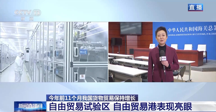 海关总署公布的最新数据显示,今年前11个月,我国自由贸易试验区和海南自由贸易港进出口8.07万亿元,同比增长5.2%,占我国外贸整体比重提升0.3个百分点,达到19.6%。