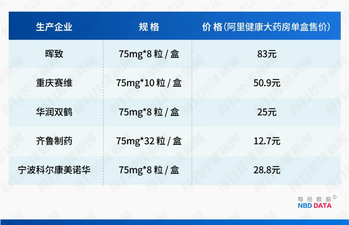 在京东大药房,原研药乐瑞卡的销量显示为60万+,喜思平销量达40万+。在阿里健康大药房,后者单盒(75mg*32粒)价格为12.7元。