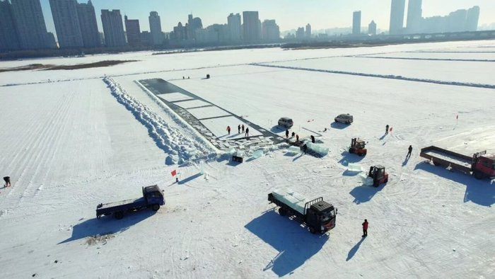现代存冰技术更显神奇。新采的冰砖并非立即使用,而是裹上稻草、隔热膜、反射布组成的“三层棉被”,在密封仓库静待十个月。当夏季气温飙至30℃时,这些存冰仍能保持完整,解决了冰雪大世界11月开工与松花江12月封冻的时间矛盾。每吨存冰成本远超新冰,却是维系冰城冬季梦幻的时空桥梁。