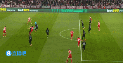 第17分钟,基米希挑传禁区内左侧,格纳布里头球摆渡,凯恩头球攻门没顶到,身后的卡尔凌空射门,姿势比较别扭直接打飞了↓