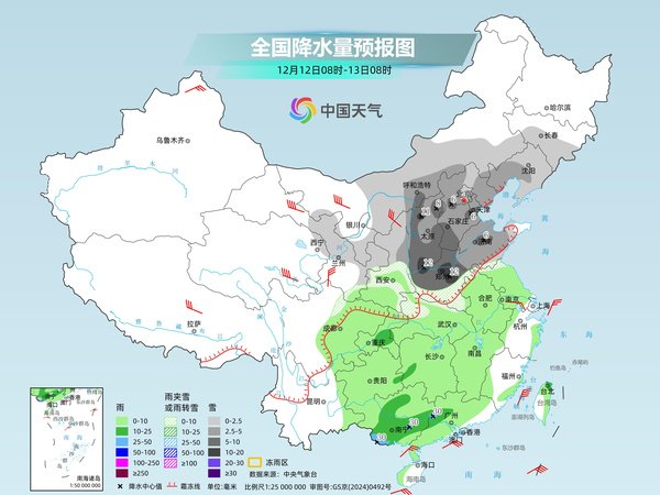 后天,内蒙古西部、东北地区中南部、甘肃中部、华北、黄淮、江汉西部等地部分地区有小到中雪或雨夹雪,其中,内蒙古中部、山西、河北中南部、辽宁中部、河南中北部等地局地大雪到暴雪。西南地区东部、江汉、江淮、江南、华南大部等地部分地区有小到中雨,其中,广西南部、广东西部等地部分地区有大雨。
